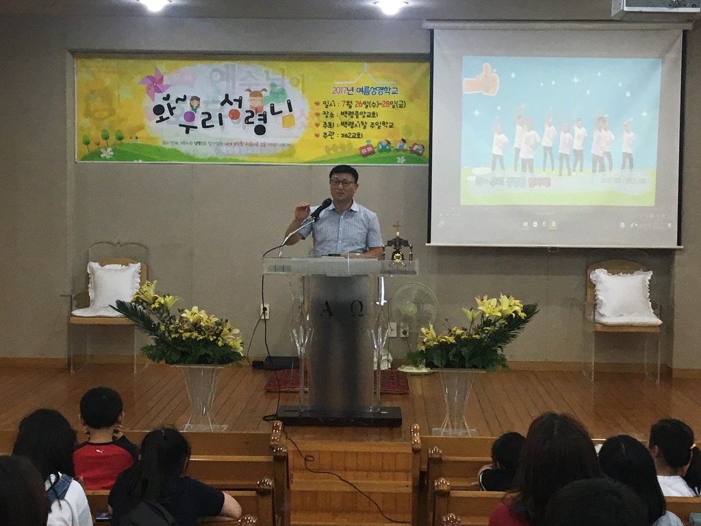 2017년 7월 백령중앙교회 여름성경학교입니다. 인천제2교회의 후원으로 시찰 전체 어린이가 모여 성황을 이루었습니다.