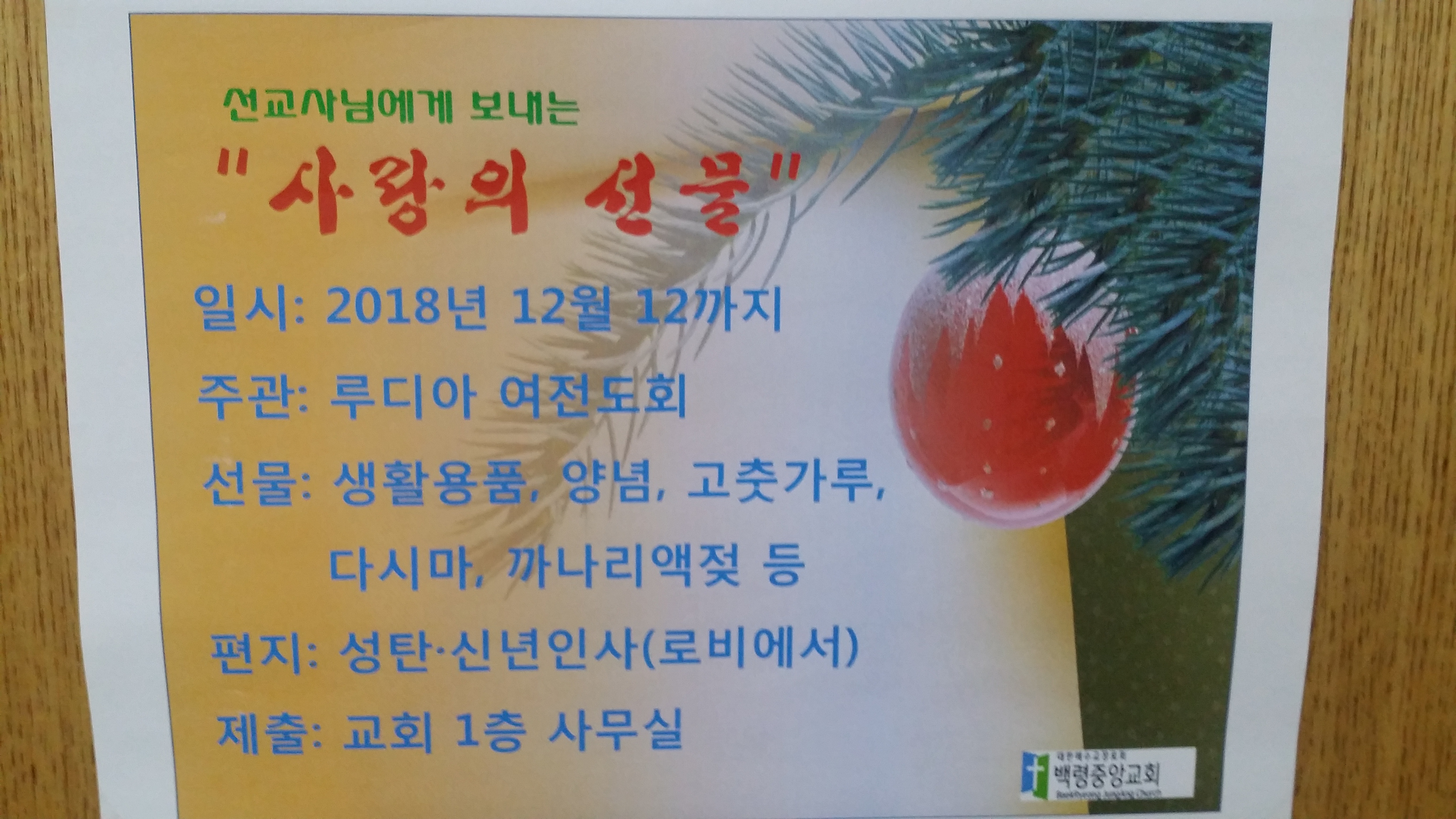 사랑의 선물보내기 12월 11일(화요일)까지만 받습니다.